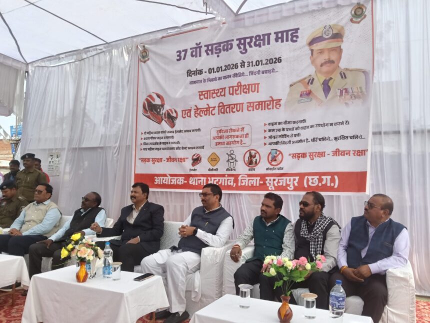 भटगांव/जरही37वें सड़क सुरक्षा माह के अवसर पर भटगांव थाना प्रभारी के नेतृत्व में जरही चौक पर एक भव्य सड़क सुरक्षा जन-जागरूकता अभियान कार्यक्रम का आयोजन किया गया। कार्यक्रम का उद्देश्य आमजन को सड़क सुरक्षा नियमों के प्रति जागरूक करना तथा दुर्घटनाओं को रोकने के लिए आवश्यक सावधानियों की जानकारी देना रहा। इस कार्यक्रम के मुख्य अतिथि श्री प्रशांत कुमार ठाकुर,…