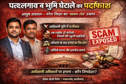 पत्थलगांव लैंड स्कैम आयुष अग्रवाल और नरेश सिदार के ‘खसरा-तंत्र’ का पर्दाफाश; PMO तक पहुंची ‘जातीय गिरगिट’ और करोड़ों के बैंक खेल की गूंज!…