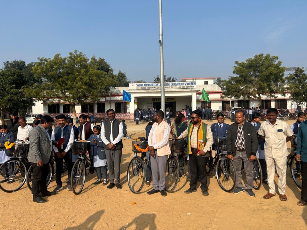 भैयाथान (सूरजपुर) भैयाथान विकासखंड के ग्राम बतरा स्थित पीएम श्री स्वामी आत्मानंद उत्कृष्ट अंग्रेजी माध्यम विद्यालय में सोमवार को छत्तीसगढ़ शासन की महत्वाकांक्षी ‘सरस्वती साइकिल वितरण योजना’ का भव्य शुभारंभ किया गया। कार्यक्रम में कक्षा 9वीं की 23 छात्राओं को निःशुल्क साइकिलें प्रदान की गईं। साइकिल पाते ही छात्राओं के चेहरों पर खुशी और उत्साह की चमक देखते ही बन रही थी।