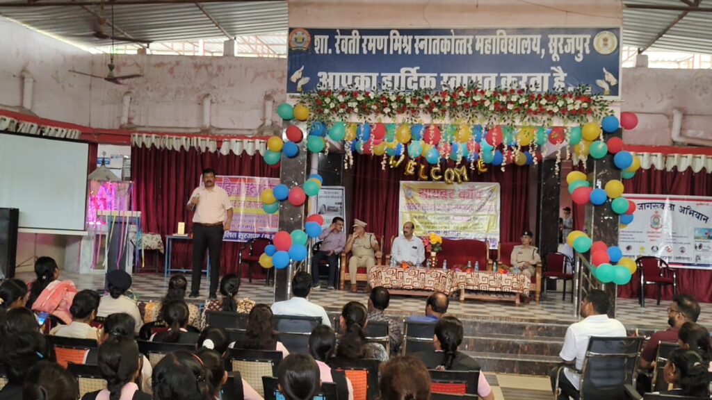 सूरजपुर:–साइबर अपराधी अपराध करने के हर दिन नए नए तरीके अपना रहे हैं। आमजन के जागरूक होने से ही साइबर अपराधियों के चंगुल में आने से बचा जा सकता है। जिलेवासी साइबर अपराध से खुद को सुरक्षित रख सके, साइबर फ्राड की घटनाओं से भली भाती वाकिफ हो और साइबर ठग के झांसे में न आए इसके लिए सूरजपुर पुलिस के द्वारा लगातार साइबर कॉप अभियान के तहत आमजनों एवं स्कूल-कालेजों में जागरूकता के आयोजन किए जा रहे है। इसी क्रम में सोमवार, 02 सितम्बर 2025 को थाना सूरजपुर पुलिस के द्वारा रेवती रमण मिश्र महाविद्यालय में साइबर जागरूकता का आयोजन किया गया। कार्यक्रम में डीआईजी व एसएसपी सूरजपुर श्री प्रशांत कुमार ठाकुर ने छात्र-छात्राओं से साइबर सुरक्षा की जानकारी देते हुए साइबर सुरक्षा से जुड़े विषयों पर प्रश्न पूछे जिनका छात्रों ने कम शब्दों में जवाब देकर साइबर सुरक्षा के प्रति मौजूद छात्रों को प्रेरित किया।