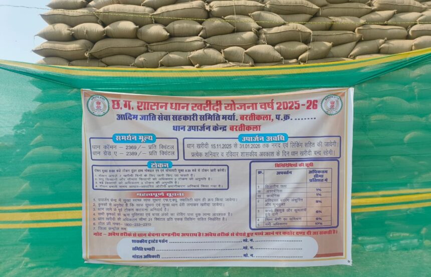 छत्तीसगढ़ में जिस किसान के वोट और धान से सरकारें बनती हैं, आज वही किसान धान बेचने के लिए दर-दर भटकने को मजबूर है। सरकार मंचों से किसान हितैषी होने का दावा करती है, लेकिन जमीनी हकीकत कुछ और ही बयां कर रही है। बलरामपुर जिले के वाड्रफनगर क्षेत्र अंतर्गत बरती कला धान उपार्जन समिति से सामने आया मामला न केवल प्रशासनिक संवेदनहीनता को उजागर करता है, बल्कि पूरे सिस्टम पर सवाल खड़े करता है।
