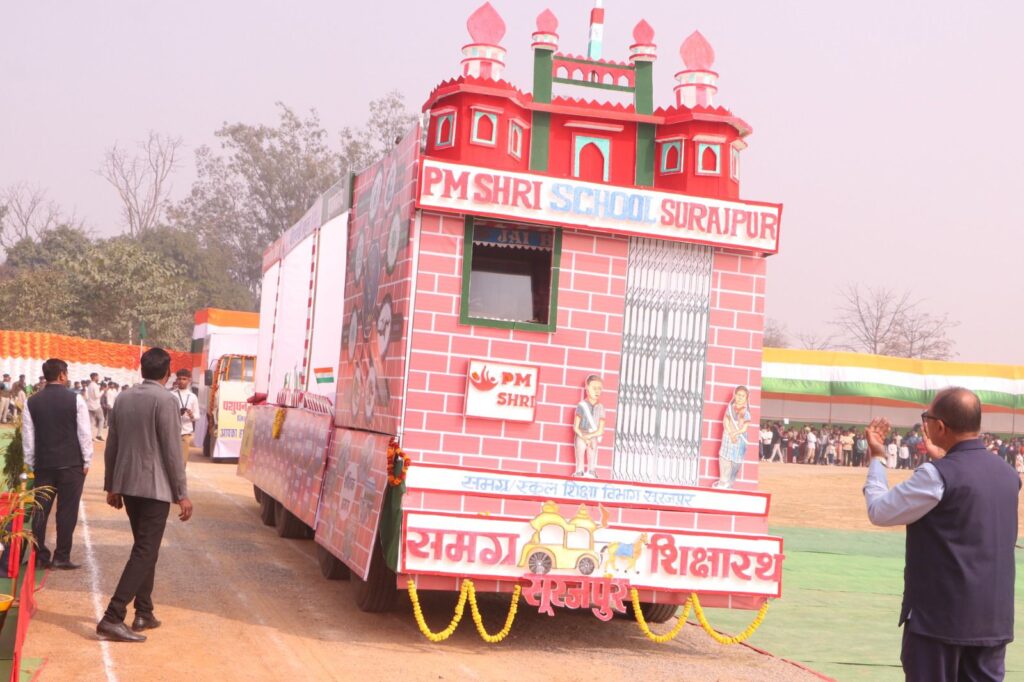 परेड में छत्तीसगढ़ सशस्त्र बल पुरुष, जिला पुलिस बल पुरूष, जिला पुलिस बल महिला, नगर सैनिक बल पुरूष, नगर सैनिक बल महिला, एनसीसी बालक, स्काउड गाईड बालक एवं बालिका , एन एस एस शामिल थे। इसके पश्चात विभिन्न विभागों द्वारा विभिन्न थीम पर छत्तीसगढ़ की प्रगति पर आधारित आकर्षक झांकी भी निकाली गई। इस दौरान विकसित भारत जी राम जी, स्वास्थ्य विभाग में राष्ट्रीय बाल स्वास्थ्य कार्यक्रम चिरायु पर आधारित झांकी, महिला बाल विकास विभाग अंतर्गत मिशन शक्ति सखी वन स्टॉप सेंटर , वन एवं जलवायु परिवर्तन विभाग अंतर्गत वन्य जीव संरक्षण, अग्निशमन विभाग द्वारा जनसुरक्षा के लेकर, जल जीवन मिशन अंतर्गत हर घर जल , आदिम जाति कल्याण विभाग द्वारा जनजातीय नृत्य की प्रस्तुति, कृषि विभाग अंतर्गत प्राकृतिक एवं उन्नत खेती, उद्यानिकी विभाग अंतर्गत , स्कूल शिक्षा विभाग अंतर्गत शिक्षा का विकास , creda विभाग द्वारा सौर ऊर्जा प्रदाय योजना तथा सीएसपीडीसीएल अंतर्गत पीएम सूर्यघर योजना को लेकर झांकी का प्रदर्शन किया गया।