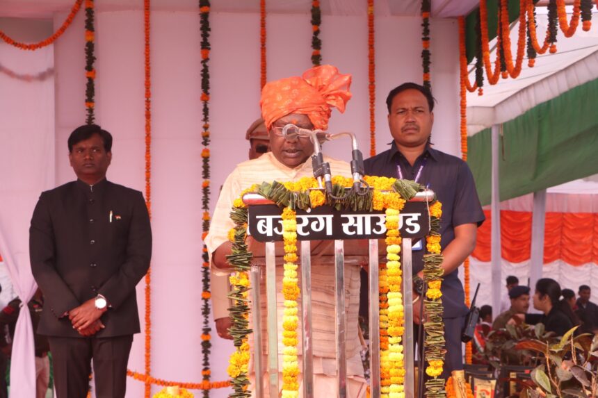 कार्यक्रम में मुख्य अतिथि श्री चिंतामणी महाराज द्वारा ठीक सुबह 09 बजे ध्वजारोहण किया। इसके पश्चात परेड की सलामी ली गई। मुख्य अतिथि ने प्रदेश के मुख्यमंत्री श्री विष्णु देव साय का आम जनता के नाम के संदेश का वाचन किया व साथ ही एकता और अखंडता का संदेश दिया।