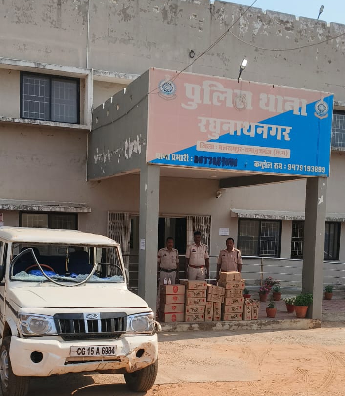 बलरामपुर-रामानुजगंज (रघुनाथनगर), 22 अप्रैल 2026 जिले में अवैध शराब तस्करी के खिलाफ पुलिस को बड़ी सफलता मिली है। रघुनाथनगर पुलिस ने कार्रवाई करते हुए करीब 210 लीटर अवैध अंग्रेजी शराब और बीयर जब्त की है। हालांकि पुलिस की सख्ती देख तस्कर मौके से वाहन छोड़कर फरार हो गए।