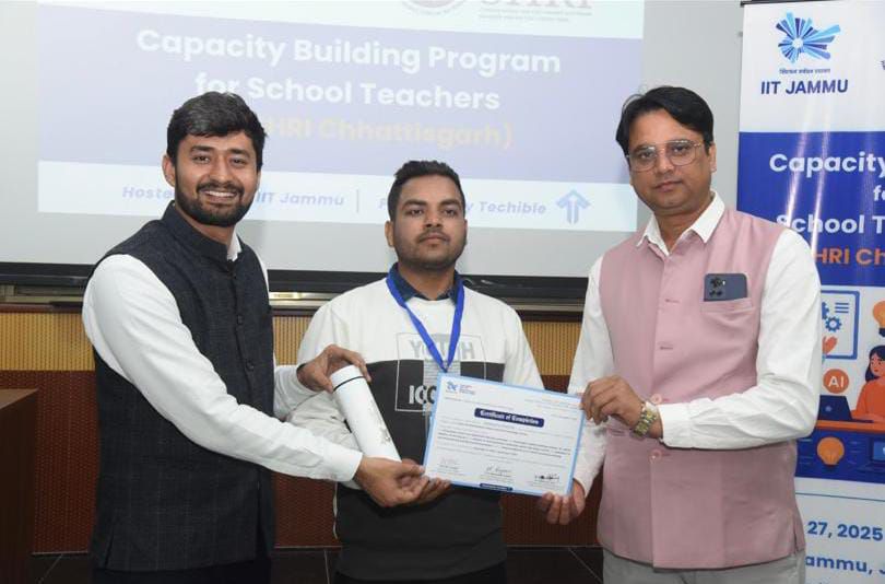छत्तीसगढ़ के पीएम श्री स्कूलों में कार्यरत विज्ञान एवं गणित विषय के शिक्षकों का पाँच दिवसीय आवासीय प्रशिक्षण कार्यक्रम प्रतिष्ठित आईआईटी जम्मू में सफलतापूर्वक संपन्न हुआ। यह प्रशिक्षण स्कूल शिक्षा विभाग, समग्र शिक्षा के निर्देशानुसार आयोजित किया गया, जिसका मुख्य उद्देश्य शिक्षकों को राष्ट्रीय शिक्षा नीति 2020 के अनुरूप आधुनिक शैक्षणिक तकनीकों में दक्ष बनाना था।