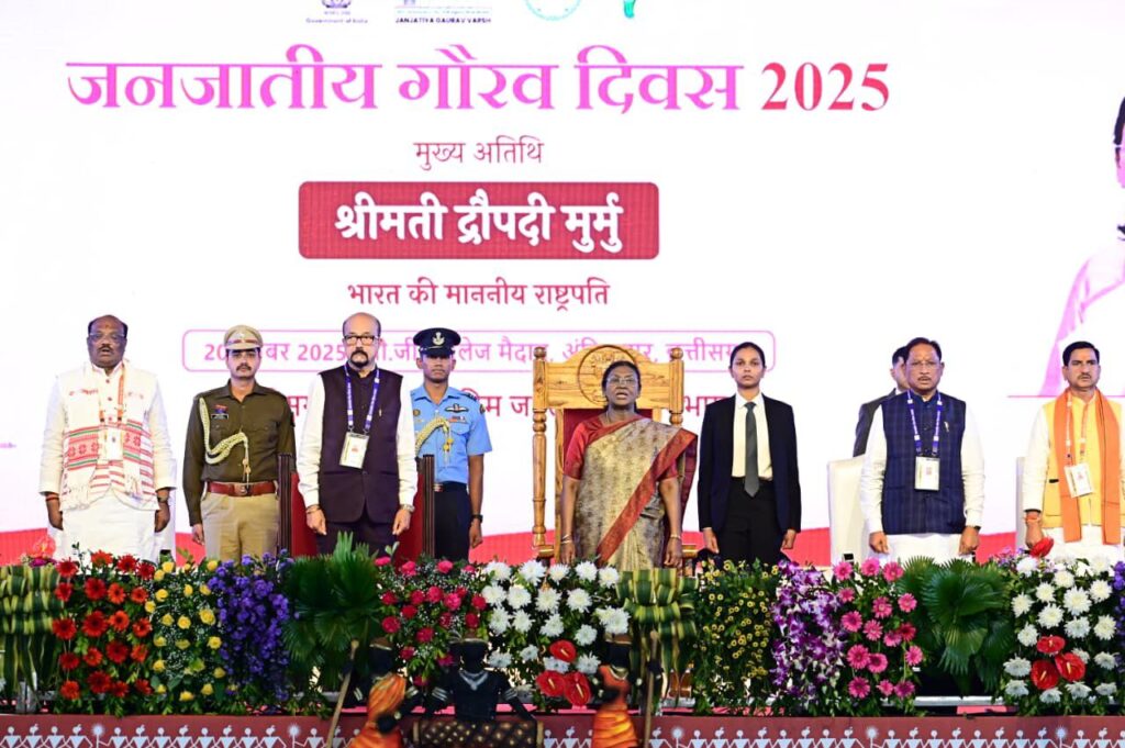 अंबिकापुर 20 नवम्बर 2025/छत्तीसगढ़ के सरगुजा जिला के अंबिकापुर पीजी कॉलेज ग्राउंड में जनजातीय गौरव दिवस समारोह में गुरुवार को राष्ट्रपति द्रौपदी मुर्मु शामिल हुईं। उन्होंने कार्यक्रम को संबोधित करते हुए कहा कि आदिवासी संस्कृति को जीवित रखना बहुत जरूरी है। छत्तीसगढ़ के जनजाति समाज के लोग अपनी संस्कृति और परंपरा को बनाए रखे हुए हैं, इसके लिए मैं उन्हें धन्यवाद देती हूं। मैं भी जनजाति समाज की बेटी हूं और जनजाति परिवार में जन्म लेने पर मुझे बहुत गर्व है। जनजाति समाज की परंपरा को मैं पहले भी जीती थी और अब भी जीती हूं। शिक्षा, स्वास्थ्य, जल, जंगल और जमीन के साथ आदिवासी संस्कृति को बढ़ावा देने की जरूरत है। साथ ही बोलीं, केंद्र और राज्य सरकारों के प्रयासों से वामपंथी उग्रवाद का उन्मूलन सुनिश्चित होगा।
